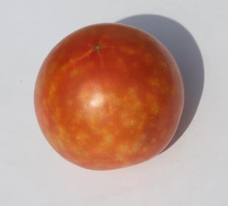 Cicatrices jaunes sur une tomate causées par des piqûres de punaises